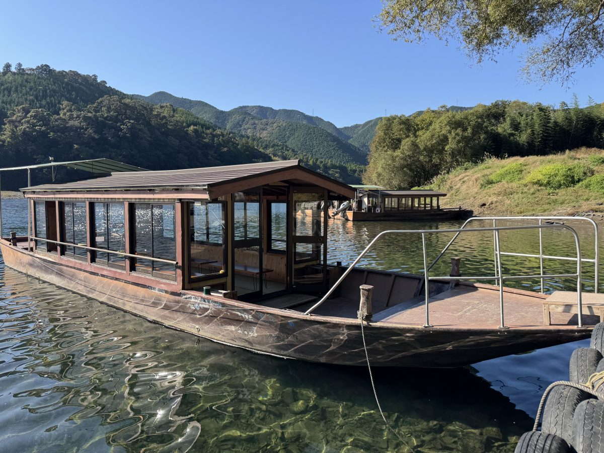 沈下橋やカヌー、ラフティングなど、川の美しさを楽しむ方法はいくつもありますが、その流れや空気を最も近い距離で感じられるのが屋形船です。
