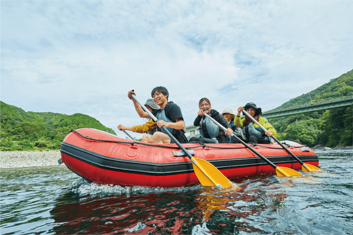 暑い時期は、川遊びと相性抜群。ファミリーラフティングも活躍。