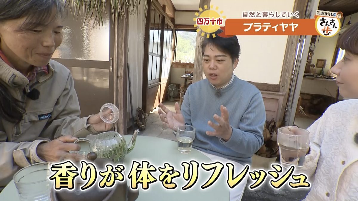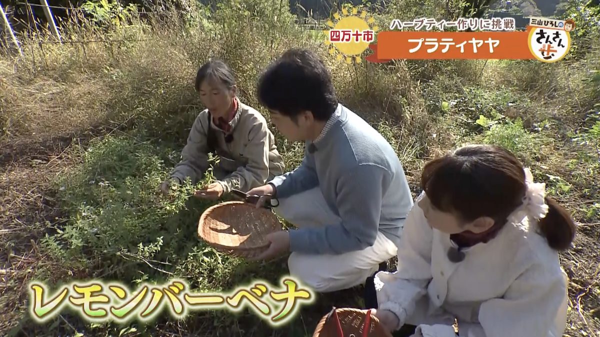 三山さんと川辺アナにも植物たちの魅力を知って欲しいと願う丹羽さんは、「ハーブティーを作るために3人で収穫体験へ向かいましょう!」と誘う。