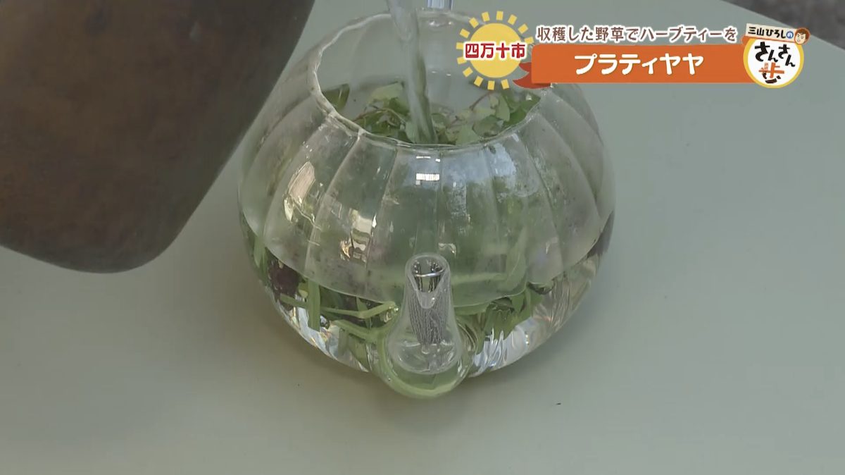 収穫を終えた3人は、ハーブティー作りを行う。