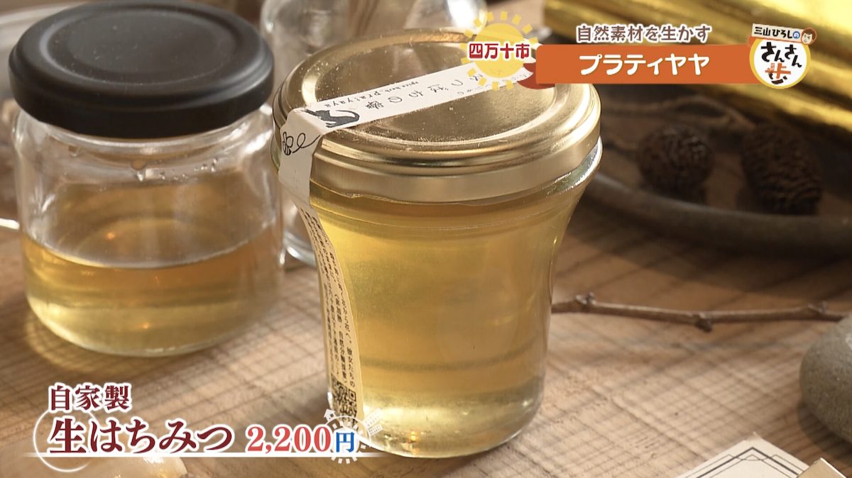 自宅で飼育しているニホンミツバチから採取した、はちみつも販売している。