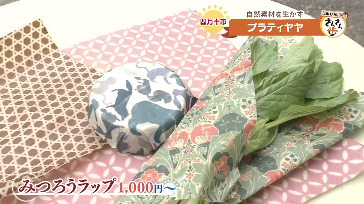 さらには、ミツバチの巣から採取できる天然のろう・蜜蝋(みつろう)を使用した、「みつろうラップ」も店頭に並べられていた。