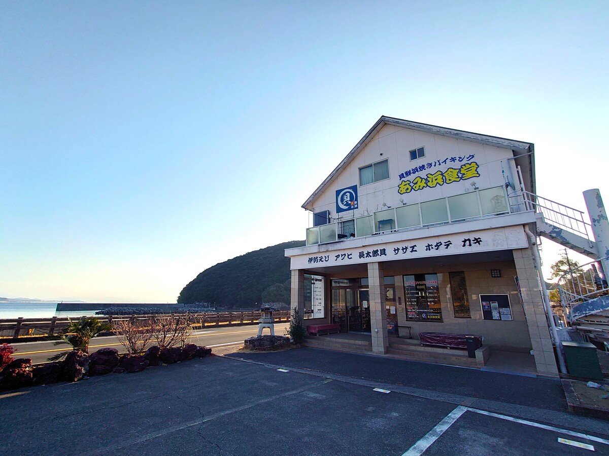 今回、高知家の〇〇編集部がお邪魔したのは、高知市内から車で西に向かって約40分、土佐市の宇佐湾を望む海沿いに建つ「貝鮮浜焼きバイキング あみ浜食堂」。