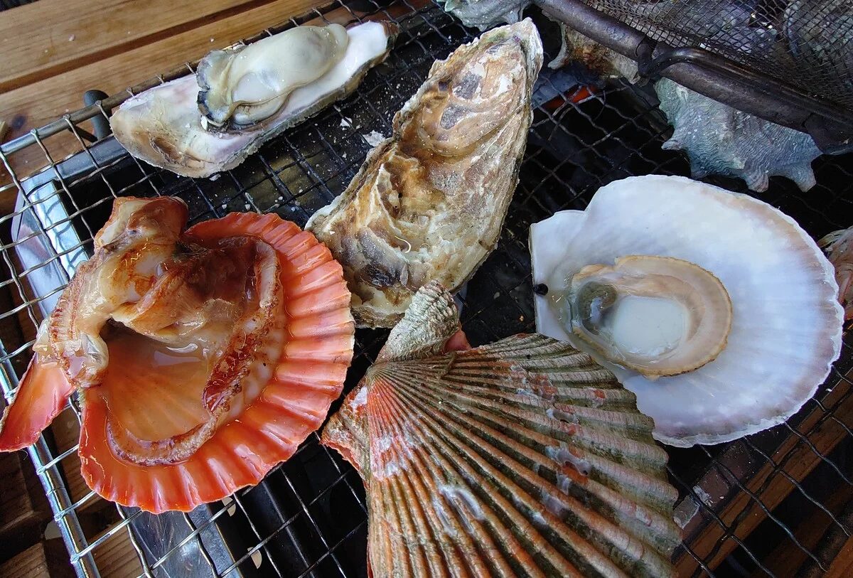 新鮮な貝類を中心に、生簀から選んでその場で焼く浜焼きバイキングが名物だ。