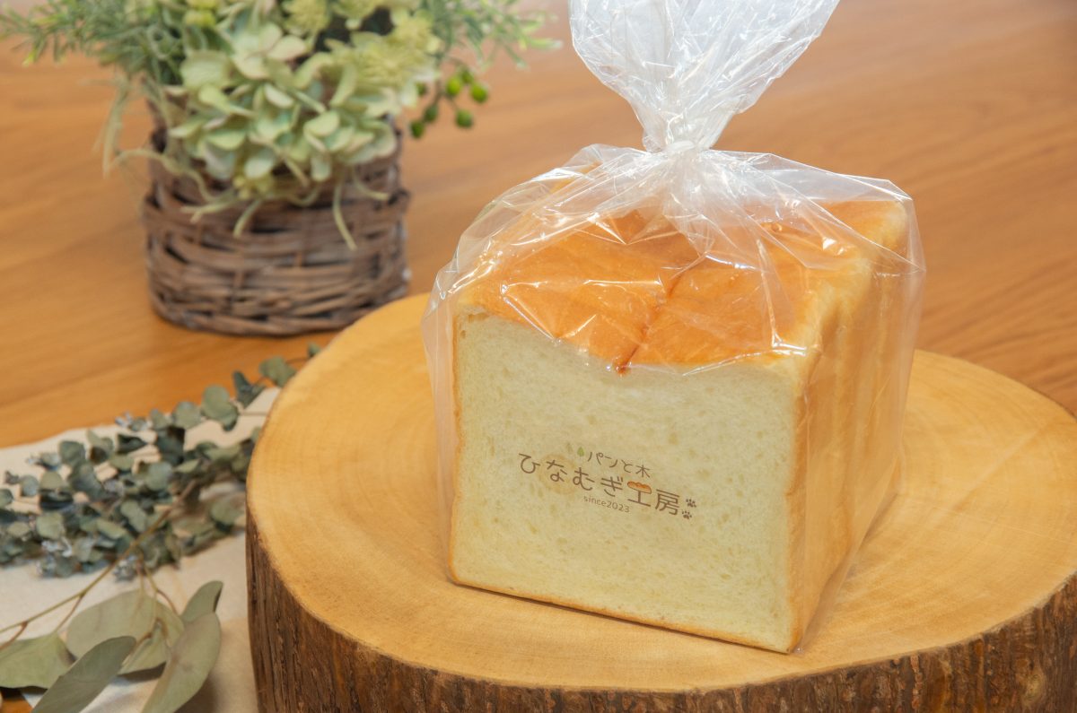 「ひなむぎ食パン」は、北海道産小麦粉を使用していて、ほんのり甘みがあり、もちっとした食感が特徴。
