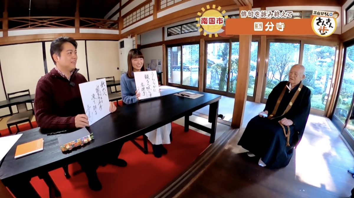 三山さんと川辺アナで俳句対決に挑戦!ジャッジは前住職の林廣裕さんに行ってもらうことに。
