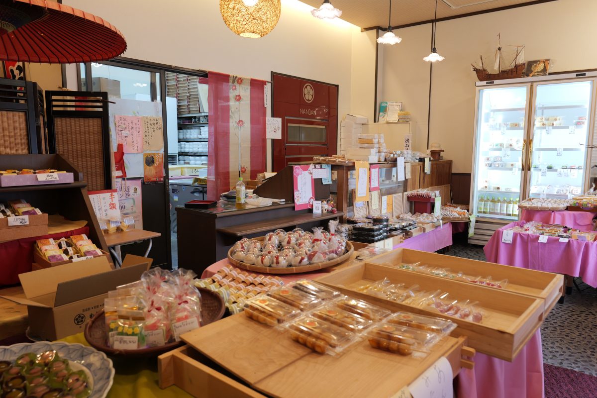 「南国市の田んぼの真ん中の餅屋」として親しまれ、暖簾をくぐれば、多種多様な団子や手作りの季節の和菓子が並び、凛とした品格とどこか懐かしい温もりが迎えてくれる。