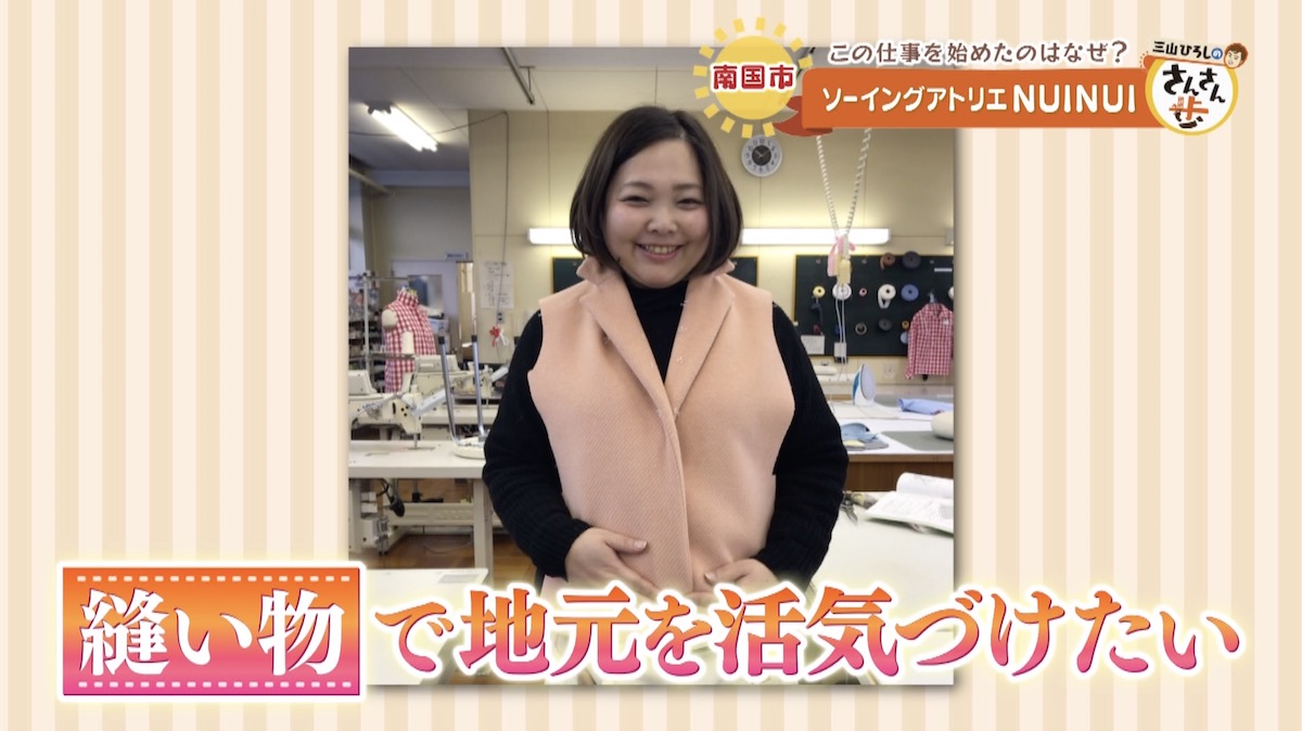 南国市の地域おこし協力隊として活動し、縫い物で地元を活気づけたい!という一心で「ソーイングアトリエNUINUI」をオープンさせた。