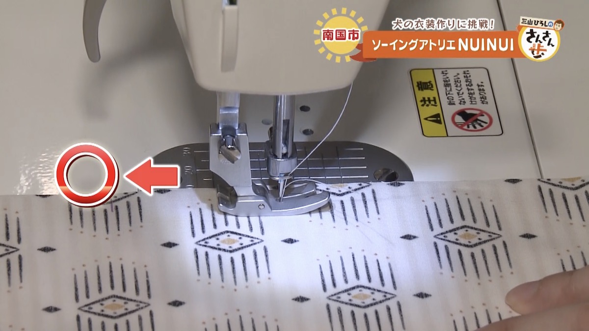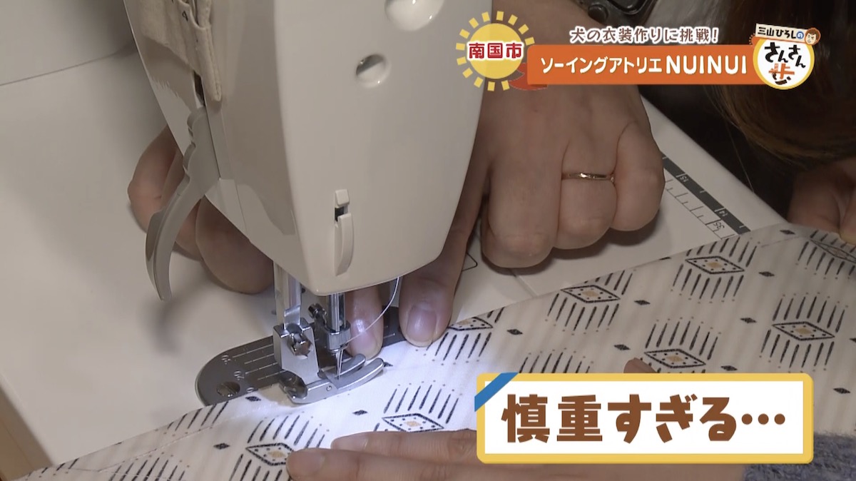 川辺アナは高校生以来のミシンということで、少し緊張気味。