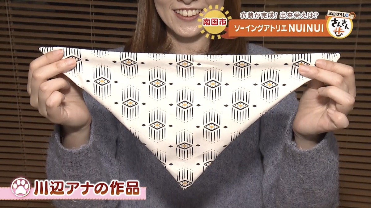 一方、川辺アナには初心者の方でも安心して簡単に作れるバンダナ作りに挑戦!