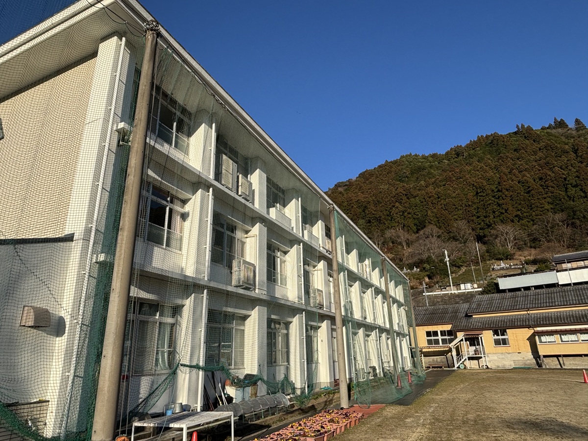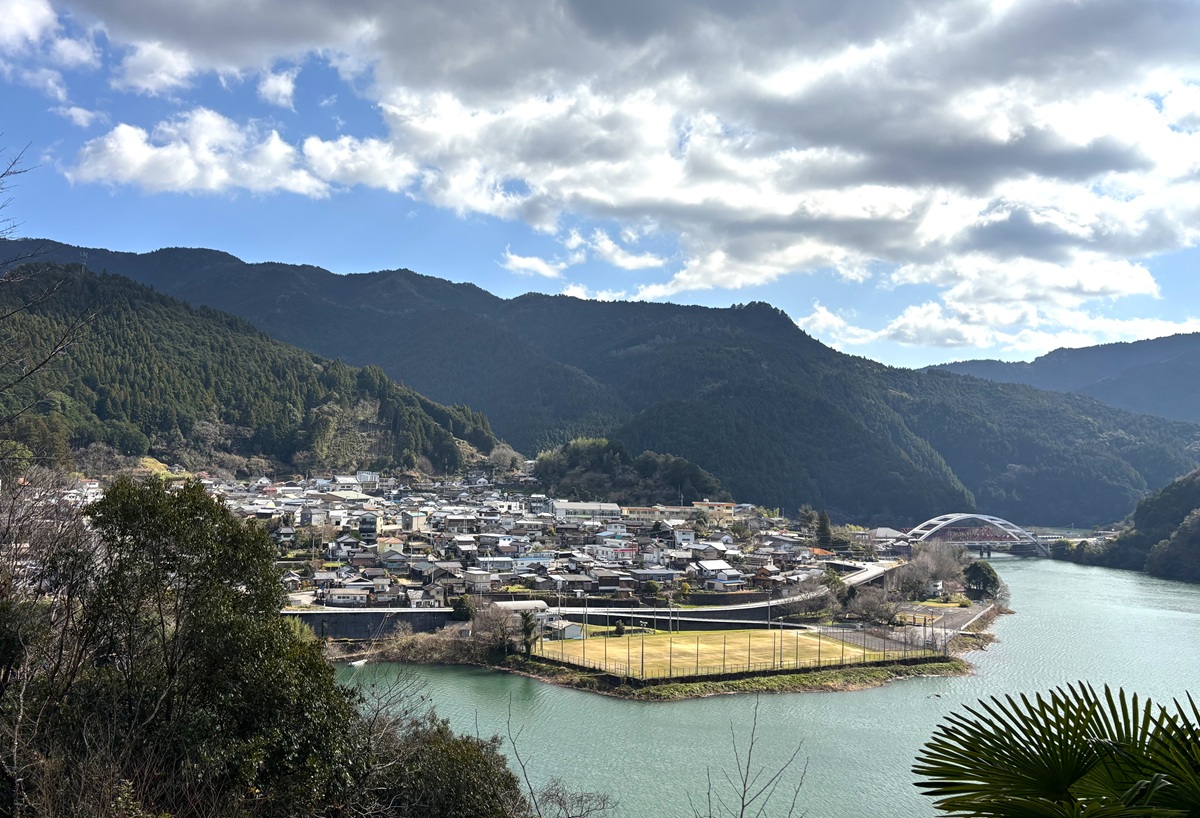 大栃中学校のある高知県香美市物部町大栃は山に囲まれた谷あいの町で、