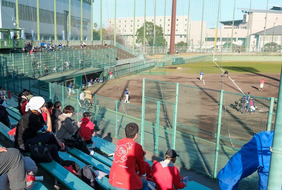 毎年3月に高知市中心商店街などで開催されている、高知の宴会文化が色濃く感じられるイベント『土佐の「おきゃく」』。そのイベントの一つとして、高知ファイティングドッグス vs 四国銀行のナイター試合が開催された。