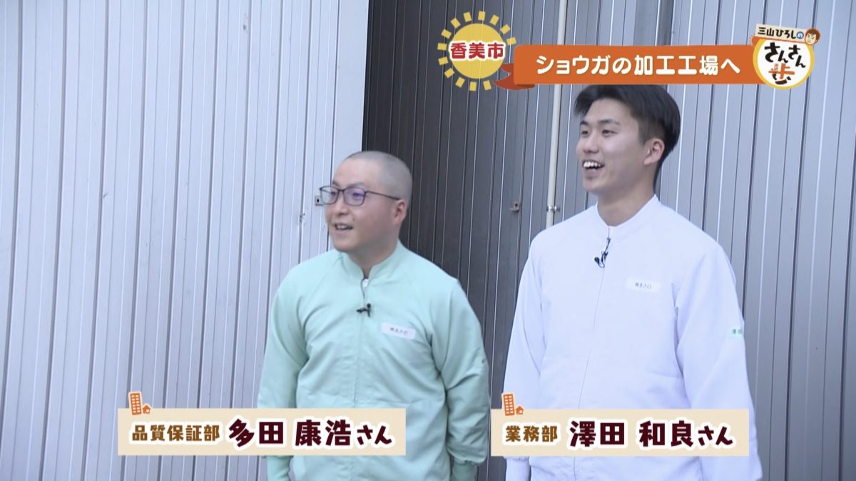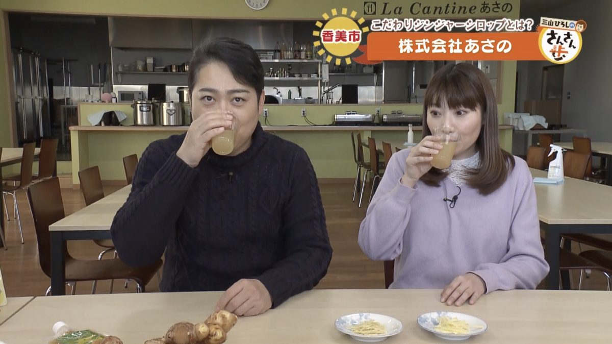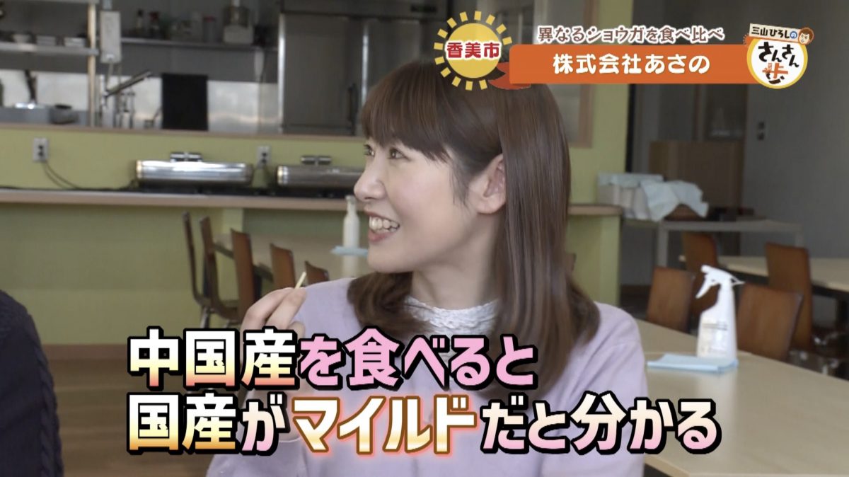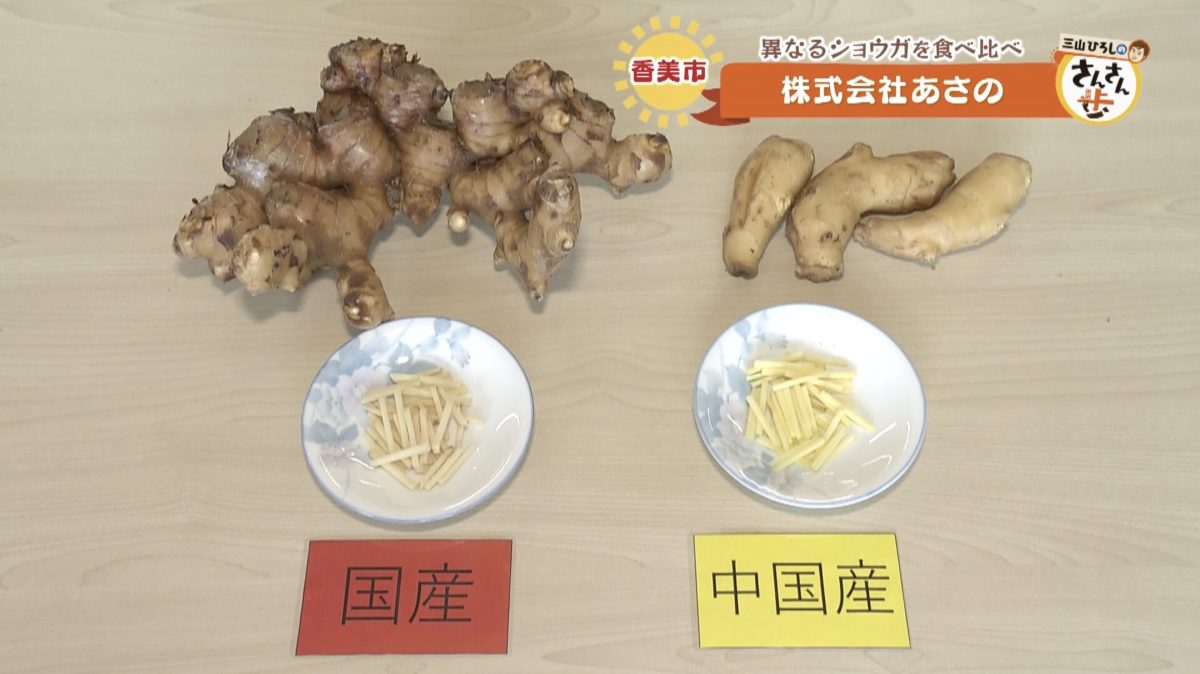 工場見学を終えた二人は、高知県産のショウガがどんな特徴を持っているかを食べ比べでチェック!