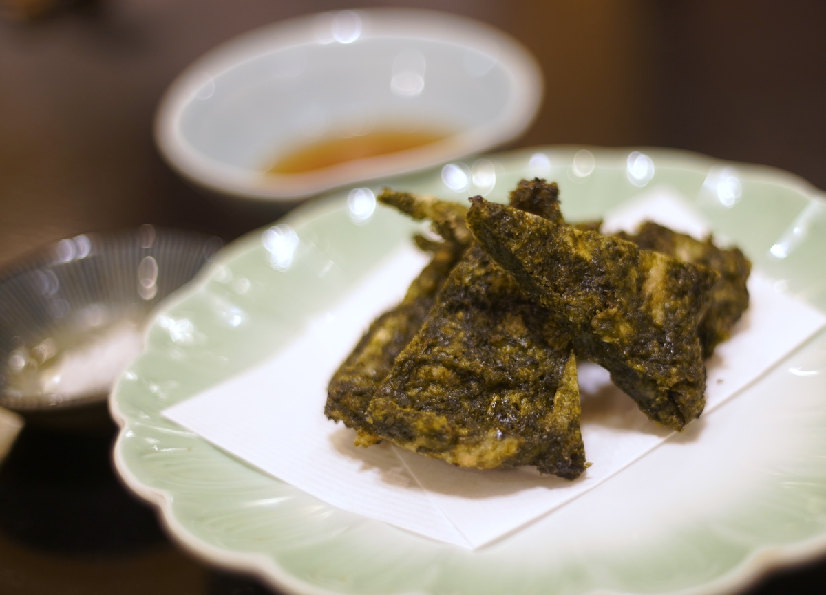希少な青のりの天ぷらだが、何回もいただいて思うのは、当たり外れが激しい。