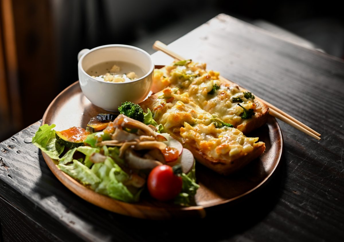 ある日はカレートースト、またある日は照り焼き、撮影日は、蓮根のピザトーストでした。蓮根のショクショクとした食感、香ばしい焼き加減のチーズが小麦の上に広がる幸せが堪能できます。