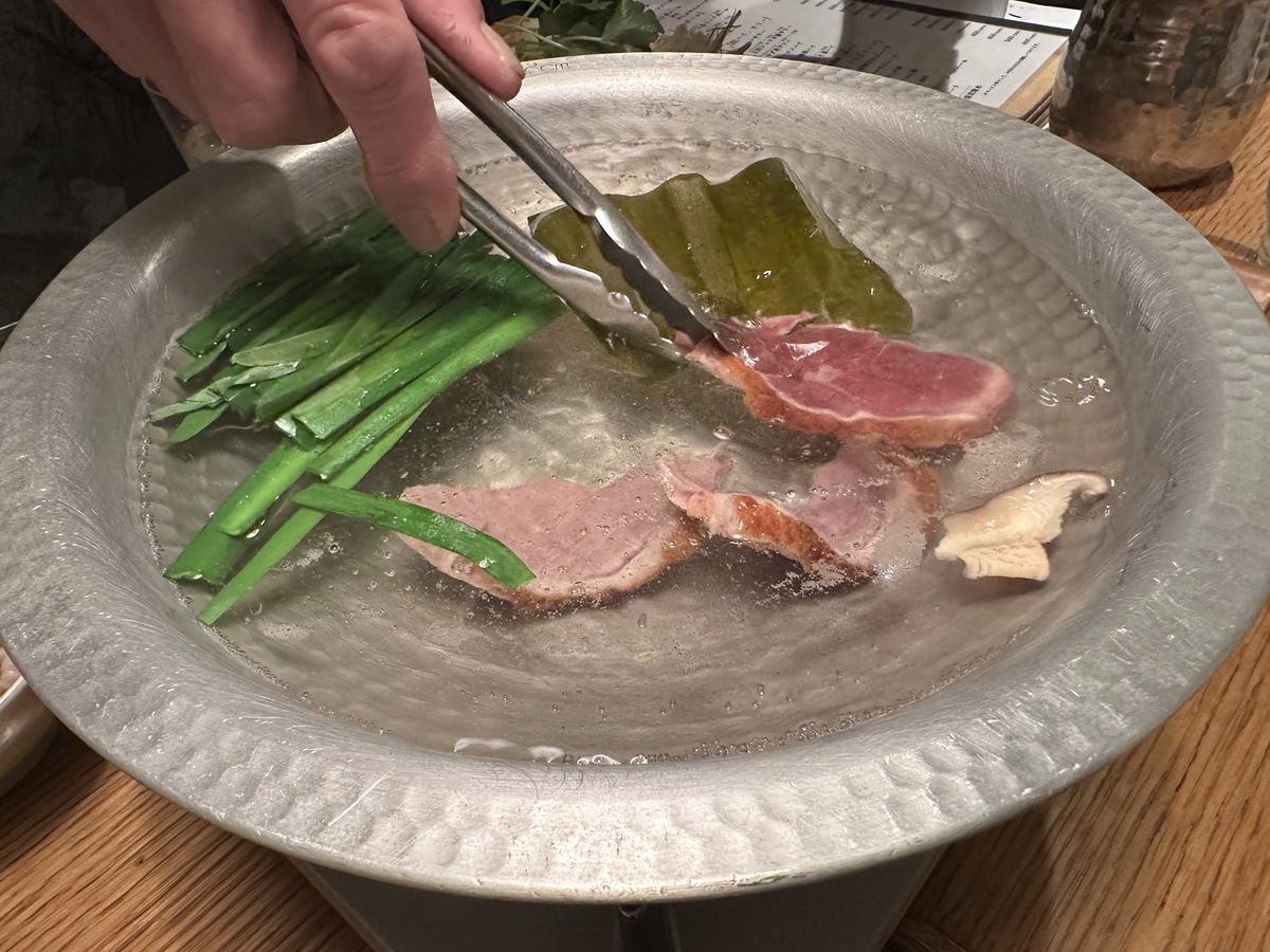 鉄板焼きも良かったが、この店に来たら、やはりこの「鴨しゃぶ」でしょう。