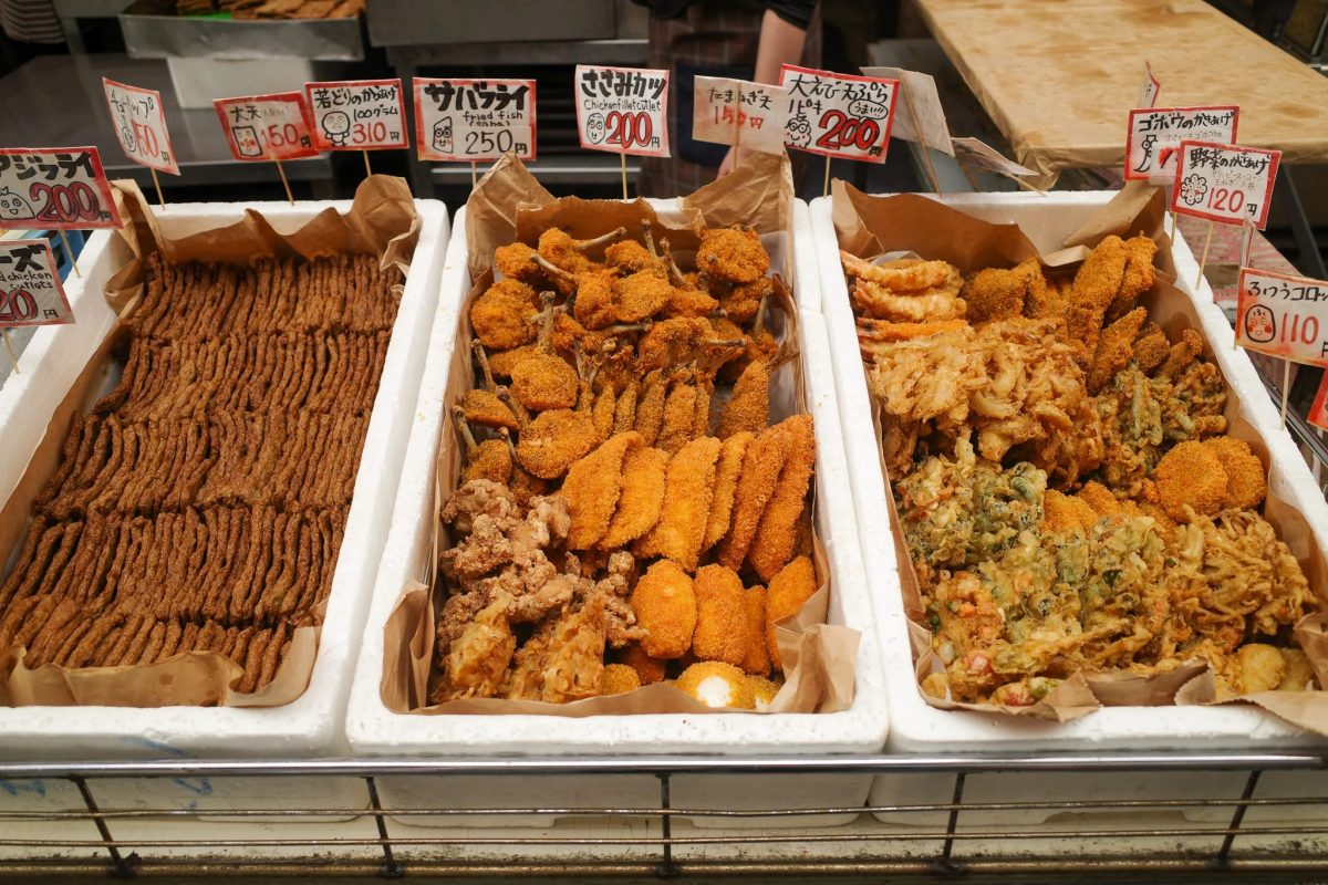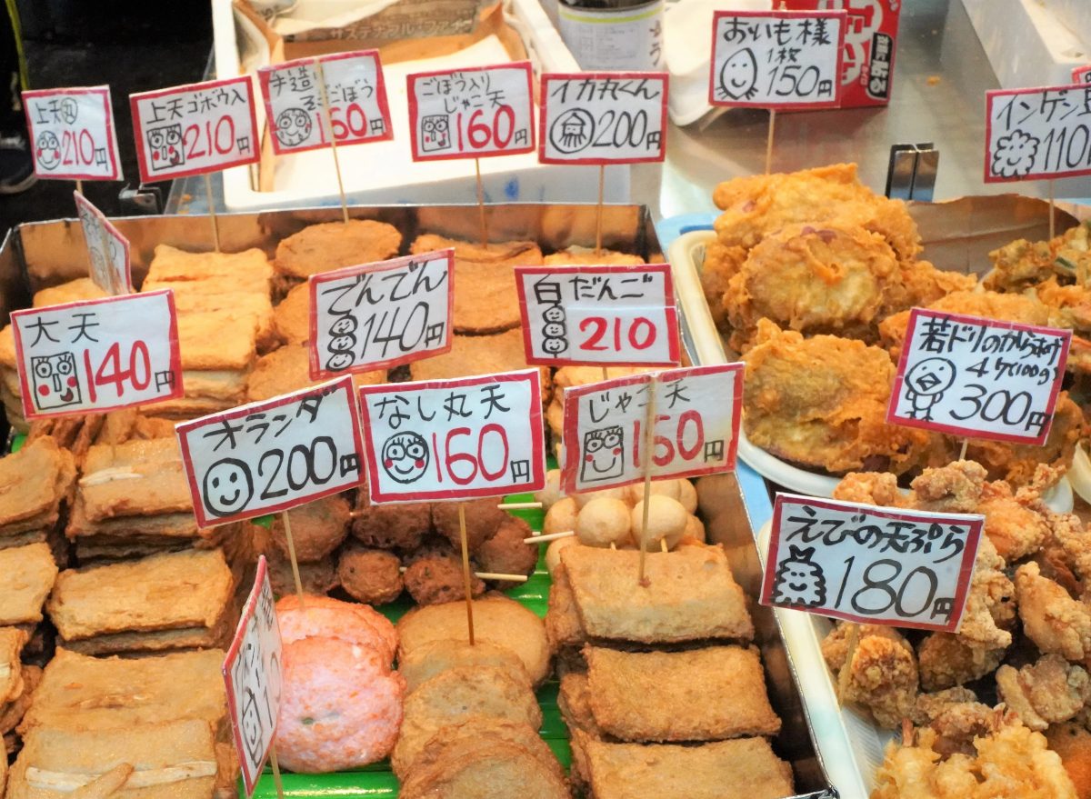 Most items can be bought individually, so you can snack while strolling through the shopping street.